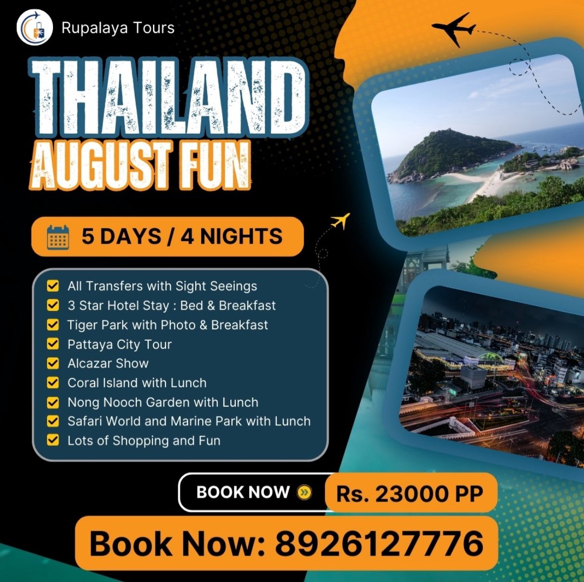 At Rupalaya Tours, we believe that travel is more than just visiting a destination—it's about creating unforgettable memories and meaningful connections. As a new-age travel company, we specialize in personalized tour experiences that are thoughtfully crafted and hassle-free. Whether you're exploring the vibrant cultures of India or discovering the stunning landscapes of Thailand, Vietnam, Cambodia, and Indonesia, our focus is always on quality, comfort, and authenticity. With a passion for travel and a commitment to excellence, we're here to make every journey truly special—one trip at a time.